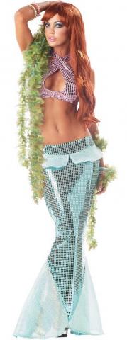The Mesmerizing Mermaid Costume includes a sequins pink halter top and green sequins skirt.