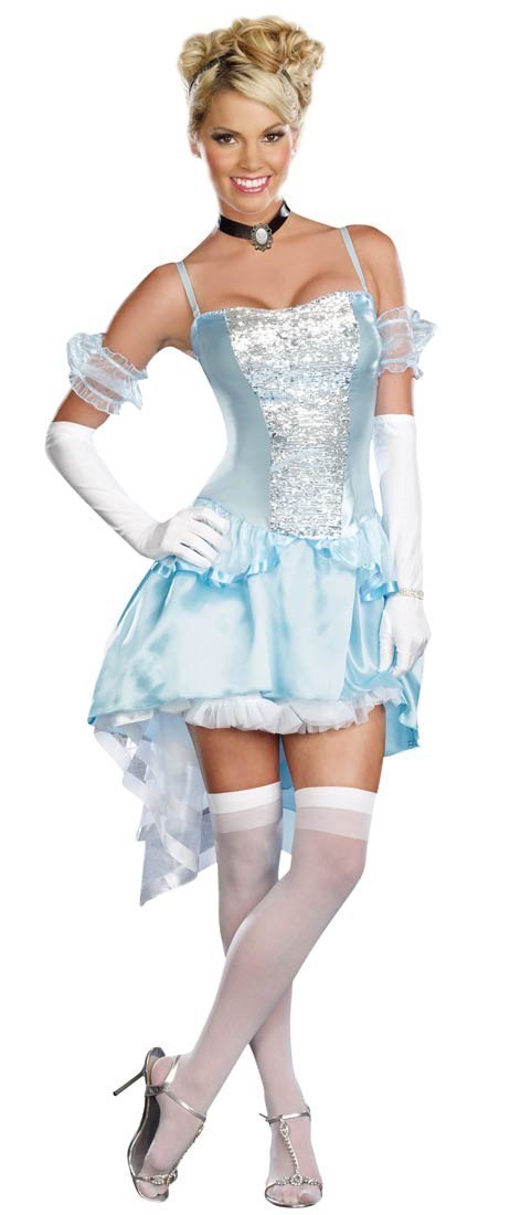 Midnight Magic Princess costume includes a stretch satin dress with sweetheart neckline and a reversible sequin front insert that changes from blue to silver. The dress also features puff sleeves and a removable back bow.