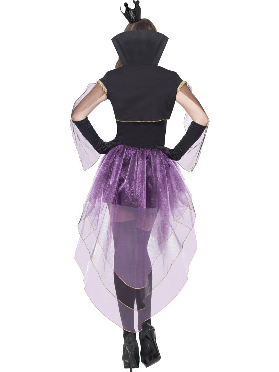 Mirror Mistress costume includes a purple and black dress with a purple train and gold detailing. To complete the look a crop jacket with collar is also included.