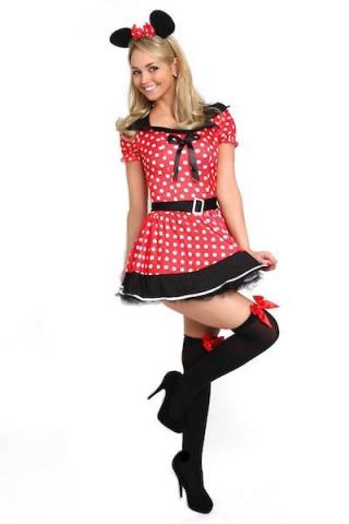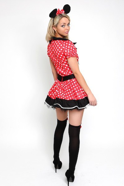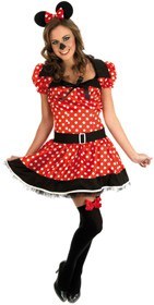 The costume includes cute mouse ears with matching red/white polka dotted bow.