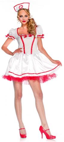 Get temperatures raising with our Naughty Nurse Costume. Included in this sexy costume is a white and red dress with a red mesh trim and bow detailing. To complete the look a Nurse's headband is also included.