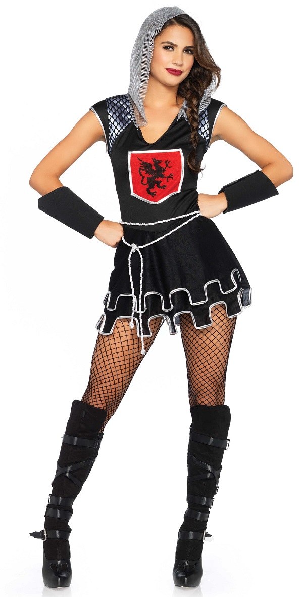Slay dragons and conquer foreign lands with our Noble Knight Costume. Included in this costume is a dress with an attached hood and a rope belt. To complete the medieval look a pair of arm pieces are also included.