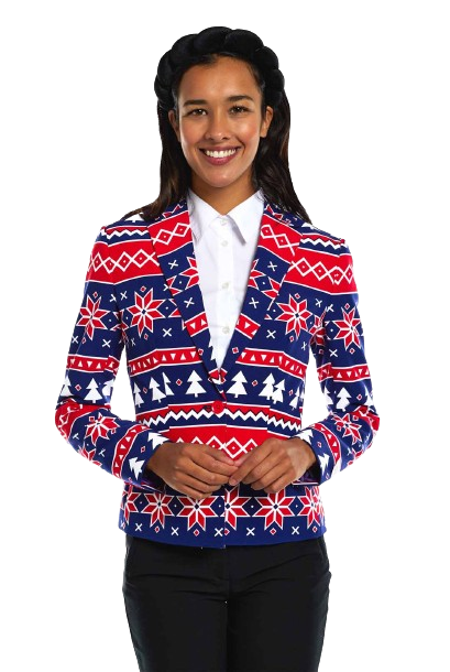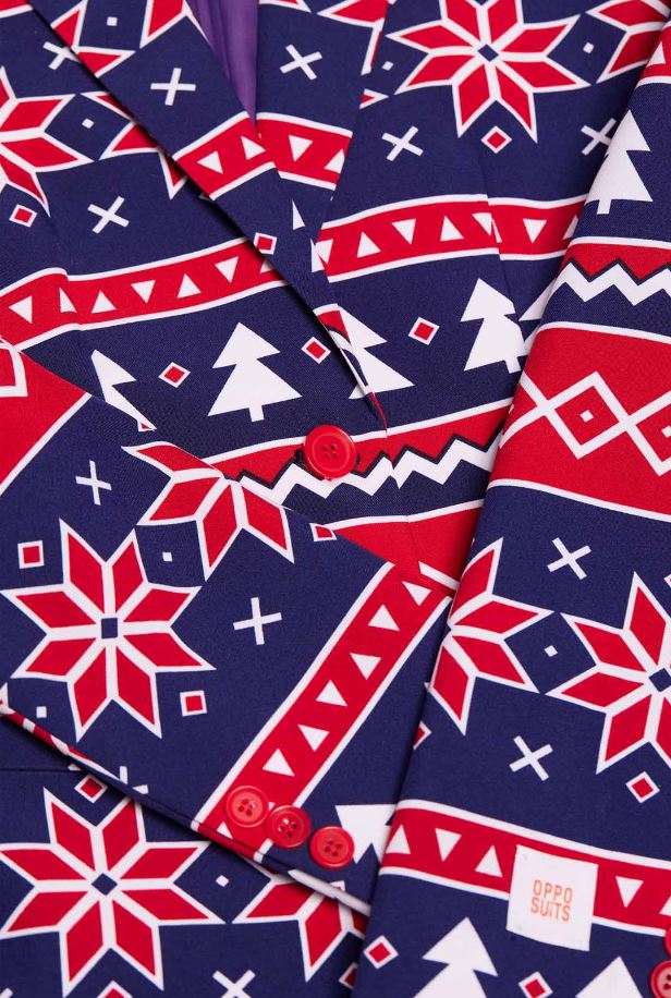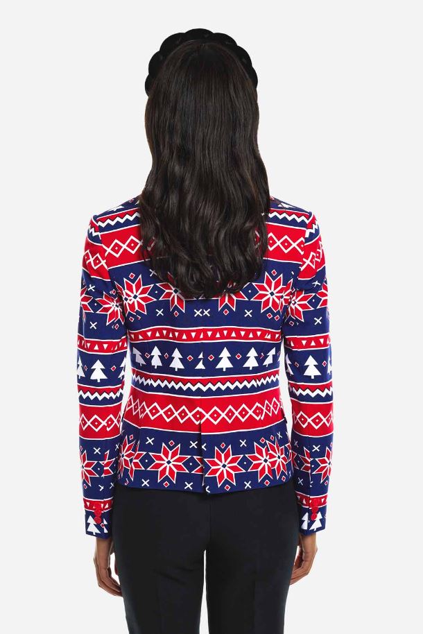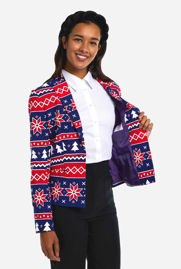 At festive gatherings, Christmas sweaters are a common sight, but if you aim to make a lasting impression, opt for the Christmas Blazer. Drawing inspiration from classic Nordic Christmas aesthetics, the Nordic Noelle Blazer features elegant blues reminiscent of the darker nights and snow, complemented by the iconic red of the season.