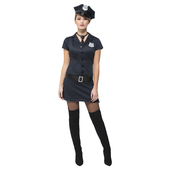 This flirty Officer Be Naughty costume includes a bodysuit with snap button closure, a matching black skirt and wet look waist corset. To complete this sexy look a black police hat, a removable name badge and neck tie are also included.