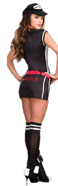 Out of Bounds Costume includes a shorts playsuit with zip off skirt and a red belt. To complete the look a hat is also included.