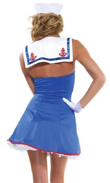 To complete the pictured look is the white sailor hat with a red and blue anchor and a pair of white gloves.