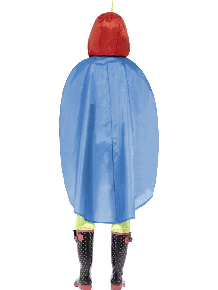 A Parrot print, shower resistant poncho with drawstring and attached hood, complete with ears.
