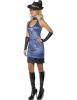 The Pimp Lady Costume includes a blue leopard print halter neck dress and a pair of black glovelettes.