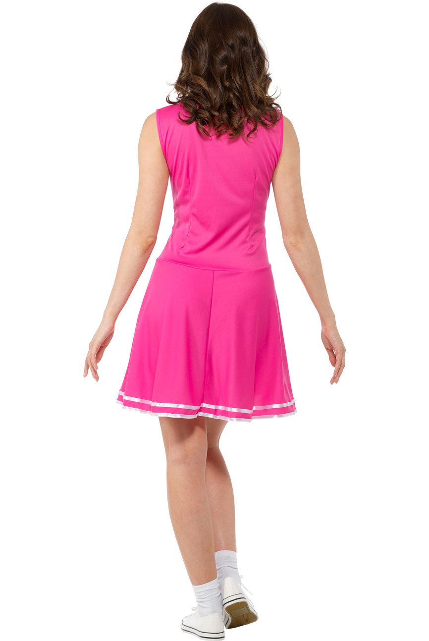 Cheer for your favourite team in our Pink Cheer Leader Costume. This pretty costume includes a white and pink dress with " cheer" printed on the top.