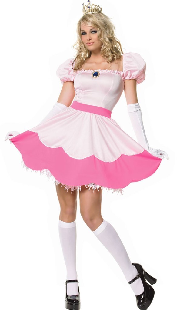 Pink Princess costume includes a pretty pink dress with sequin and jewel detailing. Also included in this costume is a pair of white gloves and a gold tiara with blue jewels.
