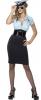 Police Cadet Costume includes baby blue and black dress with an attached police badge, matching police cadet hat and the buckled belt to finish off look.