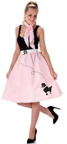 Jive into the 1950's in our Poodle Skirt & Necktie. The skirt is pink in colour and features a printed black poodle. To complete the look a pink necktie is also included.