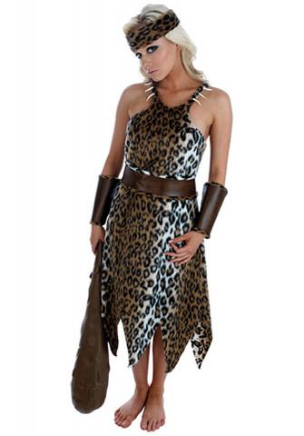 Recreate the Caveman days with our Pre Historic girl costume. This barbaric costume includes a leopard print faux fur dress with jagged ends and fang detailing around the neckline. Also included is a matching headband, a pair of arm cuffs and a belt.