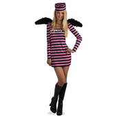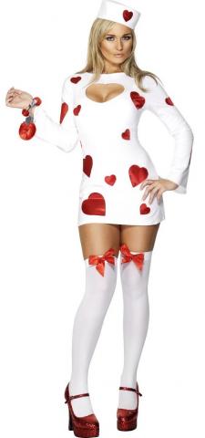 Prisoner of Love Costume includes a short white dress with red metallic effect heart embellishments and matching hat.