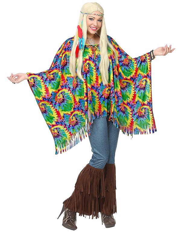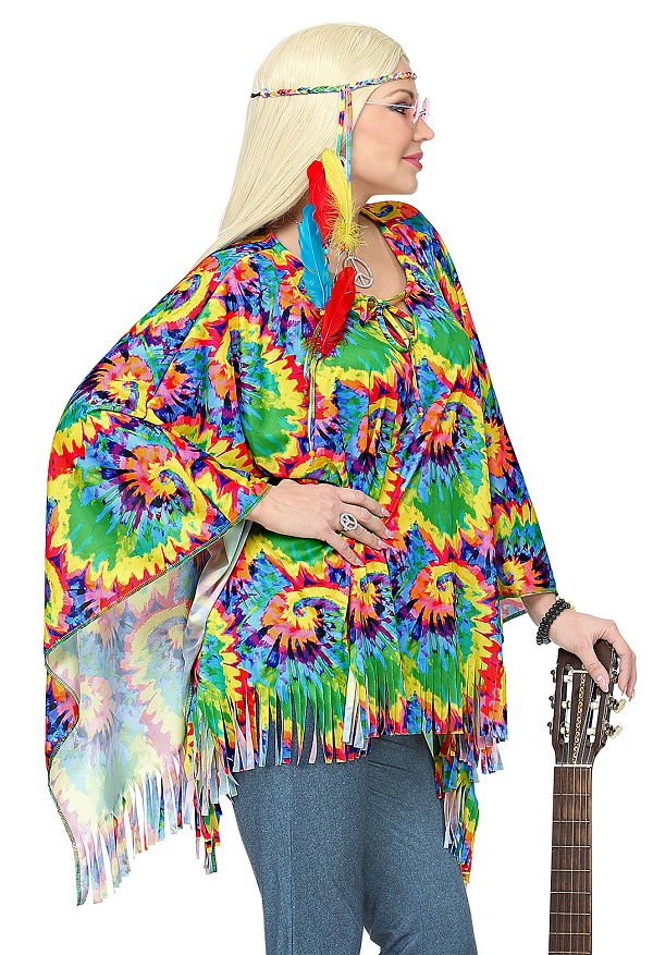 Jump back to the psychedelic 60's with our Hippie Costume. This retro costume includes a colourful poncho with fringe detailing and a headband with feathers.
