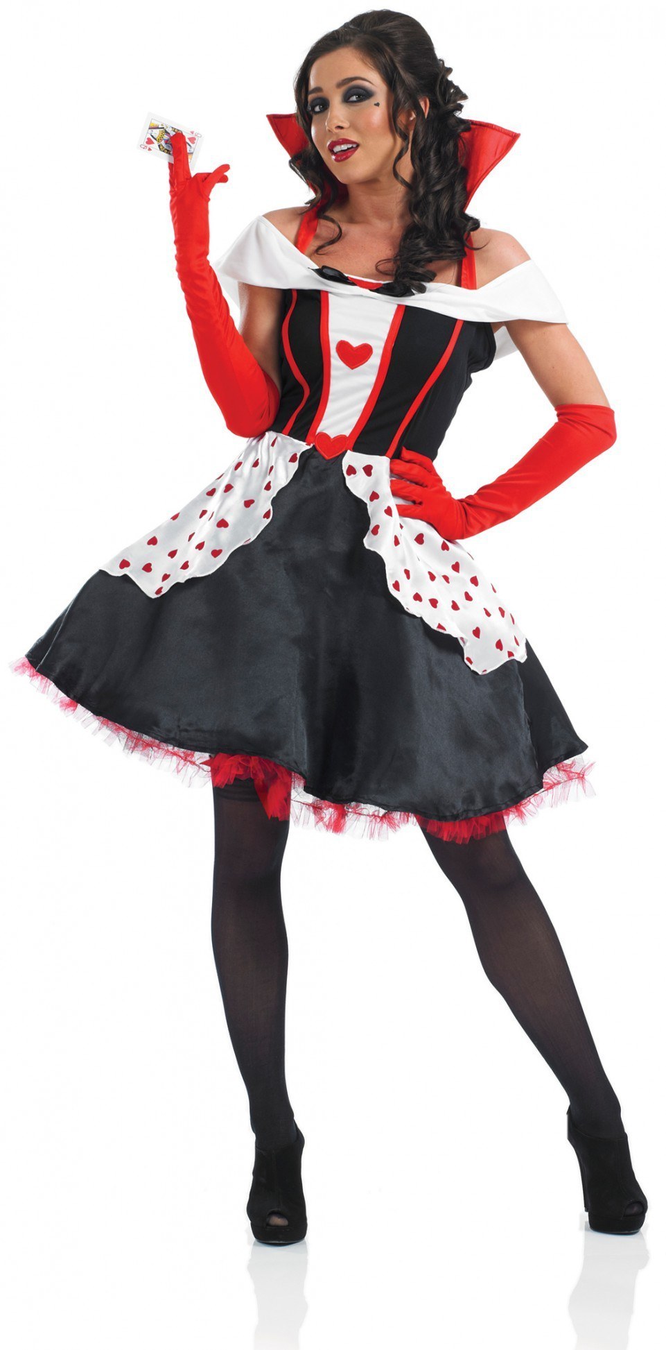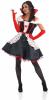Melt Hearts in this Queen of Hearts costume which includes a petticoat dress with net under slip attached, heart shape details on the waist as well as red high collar, a red pair of gloves and a pair of black stockings with cute red bows at the knees.