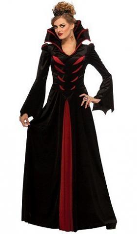 Queen of the Vampires Ladies Costume - This is an excellent costume for any fancy dress occasion. The complete costume includes a floor length black and red gown with a high collar. The costume is completed with a Tiara.