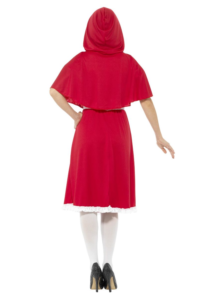 Ladies Red Riding Hood Costume includes a long length red dress with lace up corset detailing.