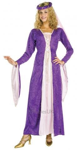 Costume includes renaissance dress and headpiece.