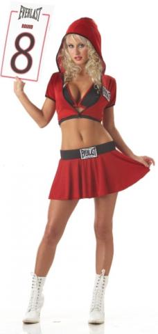 This high quality costume is officially licensed from Everlast. The Ring Card Girl costume includes a red cropped hoodie with zipper close and 'Everlast' logo.