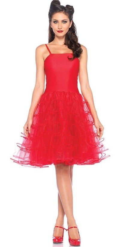Red Rockabilly Swing Dress with tulle skirt and optional straps.