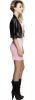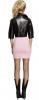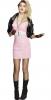 80's Rocker Diva costume includes a pink dress with detachable white belt and a black faux leather jacket. Also included is a necklace and headband.