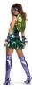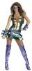 Our sassy Donatello costume features turtle shell mini ruffle halter dress with attached faux purple belt. Also included is a purple eye mask with closure to the back for a secure fit and two green wristbands with attached purple ribbon.