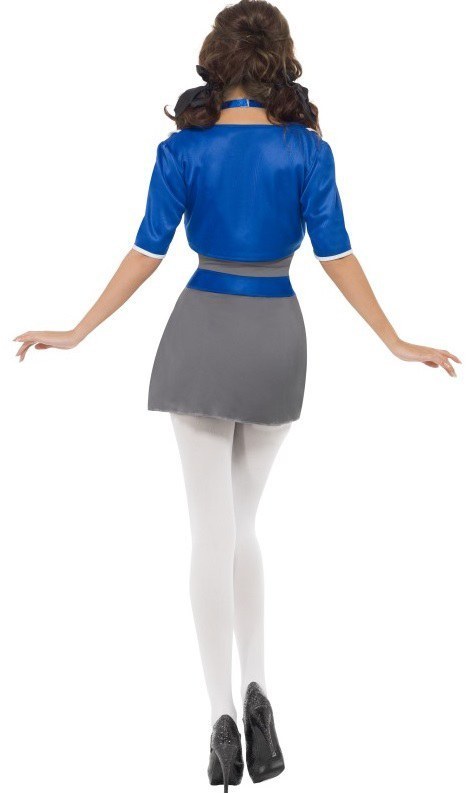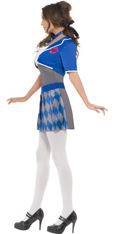 Schoolgirl costume includes a dress with shrug. To complete the look a tie is also included.