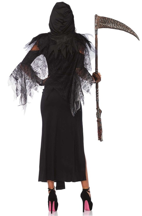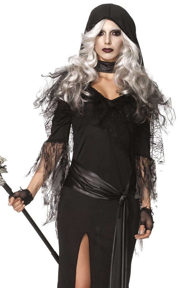 Not all Grim Reapers have to be dull, our sexy Soul Stealer Costume will steal souls and attention at your next fancy dress party. This sexy costume includes a black high slit hooded dress with lace accents and an attached waist sash.
