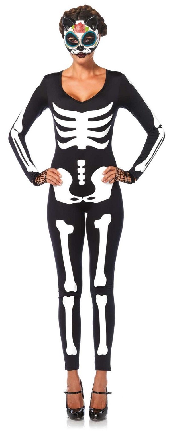 Skeleton Catsuit includes a one piece glow in the dark printed cat suit.