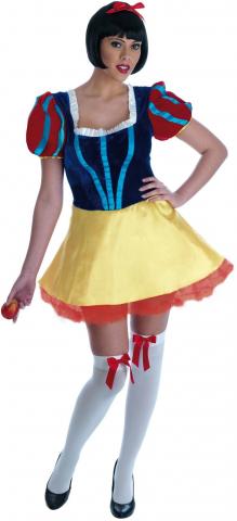 Princess Snow White Costume includes a short length dress with yellow bottom skirt and blue top. Is has pale blue ribbon detail and puff sleeves for that extra fairy tale look.