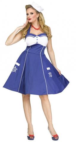 Sweet Sailing Costume includes a blue and white halter neck dress and a white sailor hat.