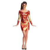 Complete the ultimate transformation with this Optimus 3 ladies costume. The costume comes with print transformers blue dress with long sleeves, the sleeves are blue and red, the dress has a v neck with metallic silver trim. The look is completed with transformers blue print headpiece.