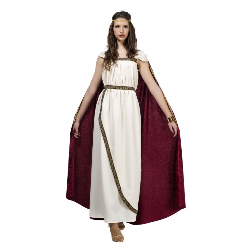 This Trojan woman costume includes an antique dress with a red cloak and headband.