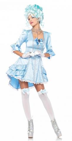 Versailles Beauty Costume includes a glitter scroll high/low dress with a layered ruffle hem and jewel satin bow accents. This deluxe dress also features a pin on back bow.