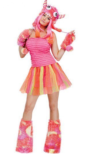 Completing the look also included are pink matching ruffled glovelets, pink monster character mask and fluffy bright coloured boot covers.