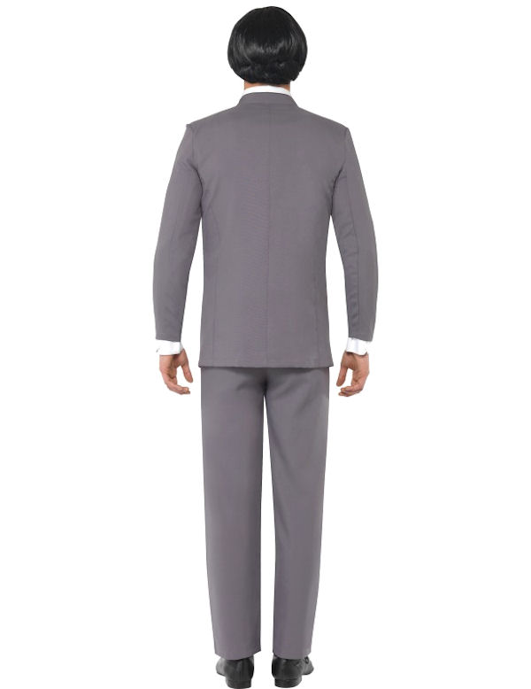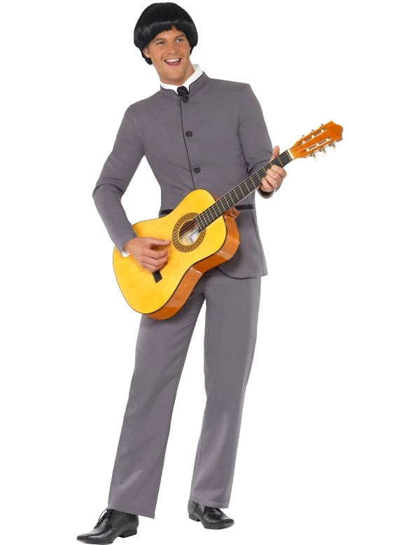 The Men's 1960s Fab Four Iconic Costume includes a pair of grey trousers and a matching jacket with buttons.