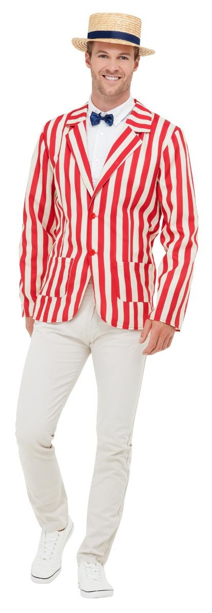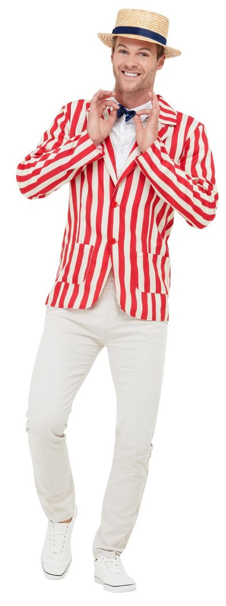 Our 20's Barber Shop Costume is a great group costume, grab your friends and become a 20's singing quartet sensation. This fun costume includes a red and white striped jacket and a navy blue bowtie.