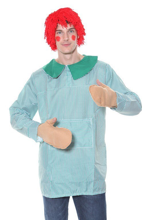 Turn into a 1980's classic icon. The Puppet costume includes red string wig, stripe green and white shirt with green collar.