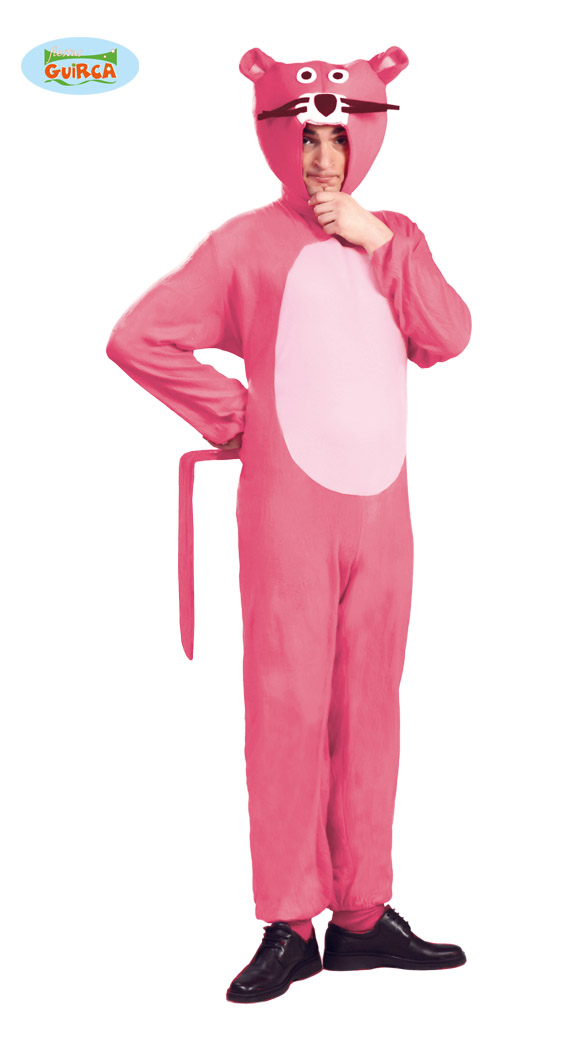 This great value adult pink Panther costume includes a one piece pink jumpsuit with hood and tail.
