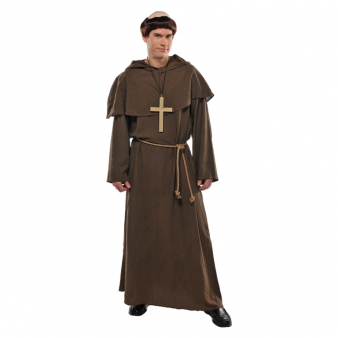 Adults Friar Costume includes robe, belt, wig and capelet.