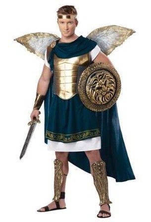 Archangel Gabriel Costume includes a tunic and chest armor with an attached cape. Also included is a headband and a pair of wings.