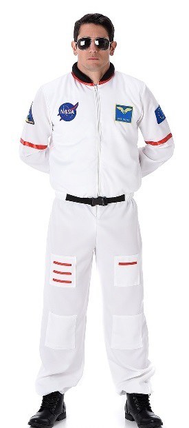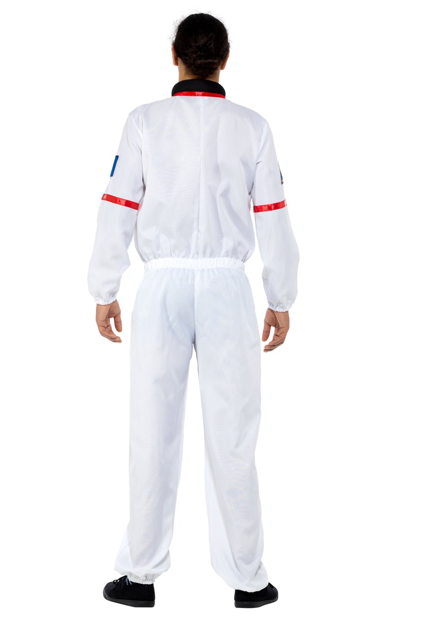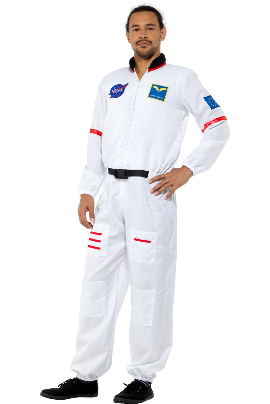Astronaut Costume includes a one piece jumpsuit with badges and a an attached belt.