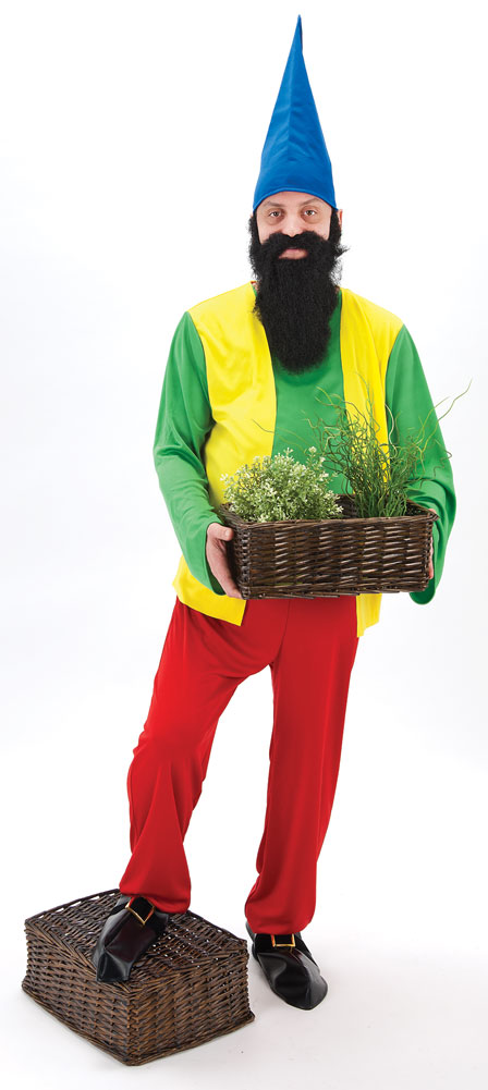 This Bashful Gnome Costume, which comes with the long sleeved green top with attached yellow waistcoat, the pointed blue hat, red trousers and rope belt is a fantastic choice for themed fancy dress parties.