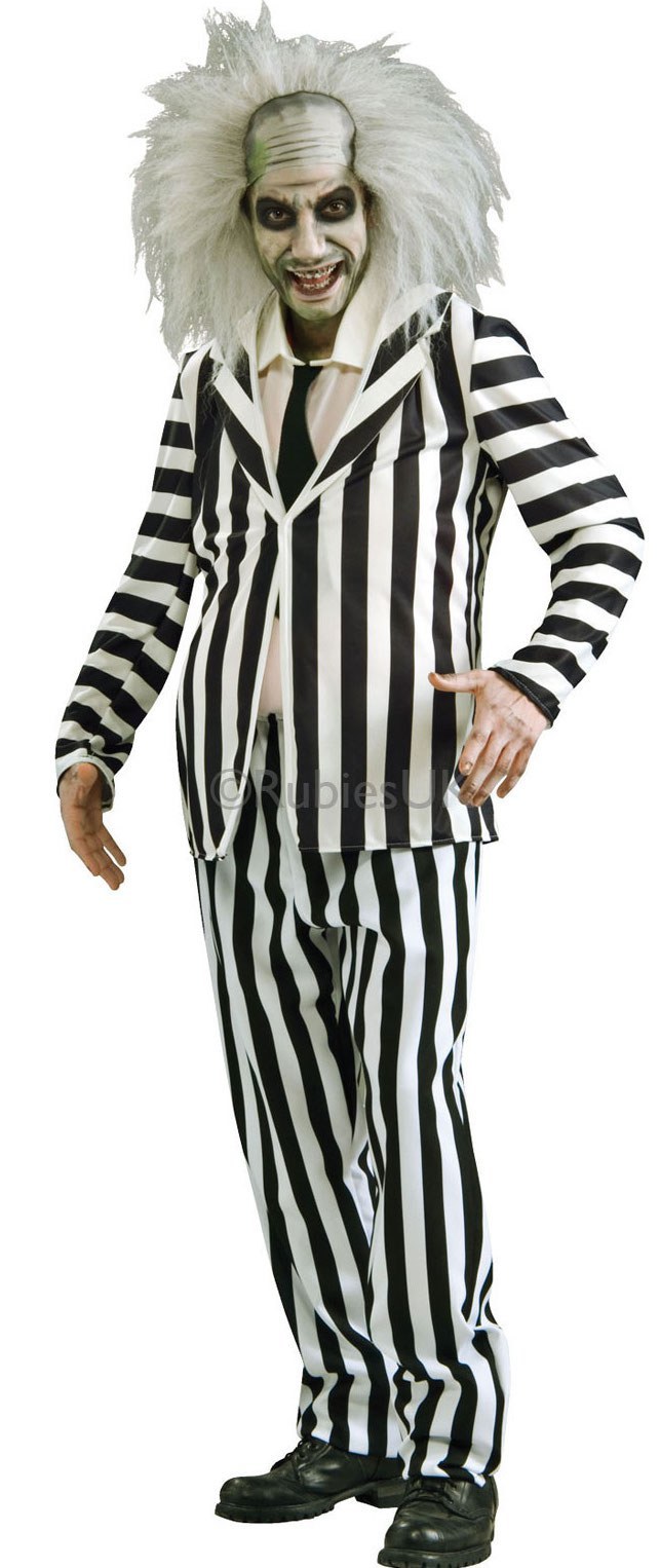 Who will you scare out of house and home as the mischievous freelance bio-exorcist Beetlejuice? As advertised in the Handbook for the Recently Deceased. Beetle Juice costume includes a thin polyester jacket with black and white vertical stripes with single button closure. The costume also includes a pair of matching trousers with vertical black and white stripes plus elasticated waist for comfortable fitting.