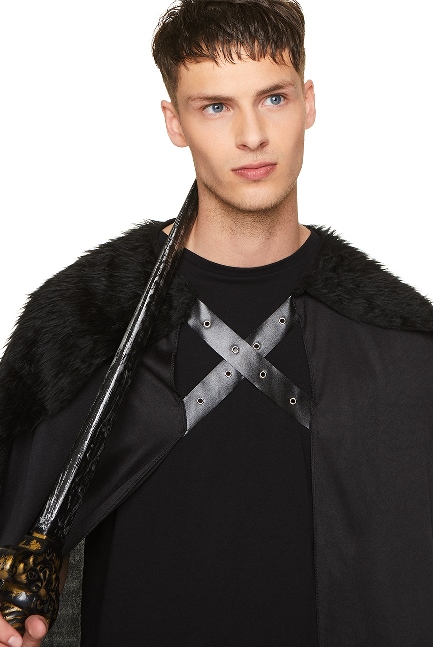 Embrace elegance with the Black Faux Fur Cape, a luxurious medieval-inspired piece. Designed with faux fur trim, this cape adds a touch of drama to any outfit.