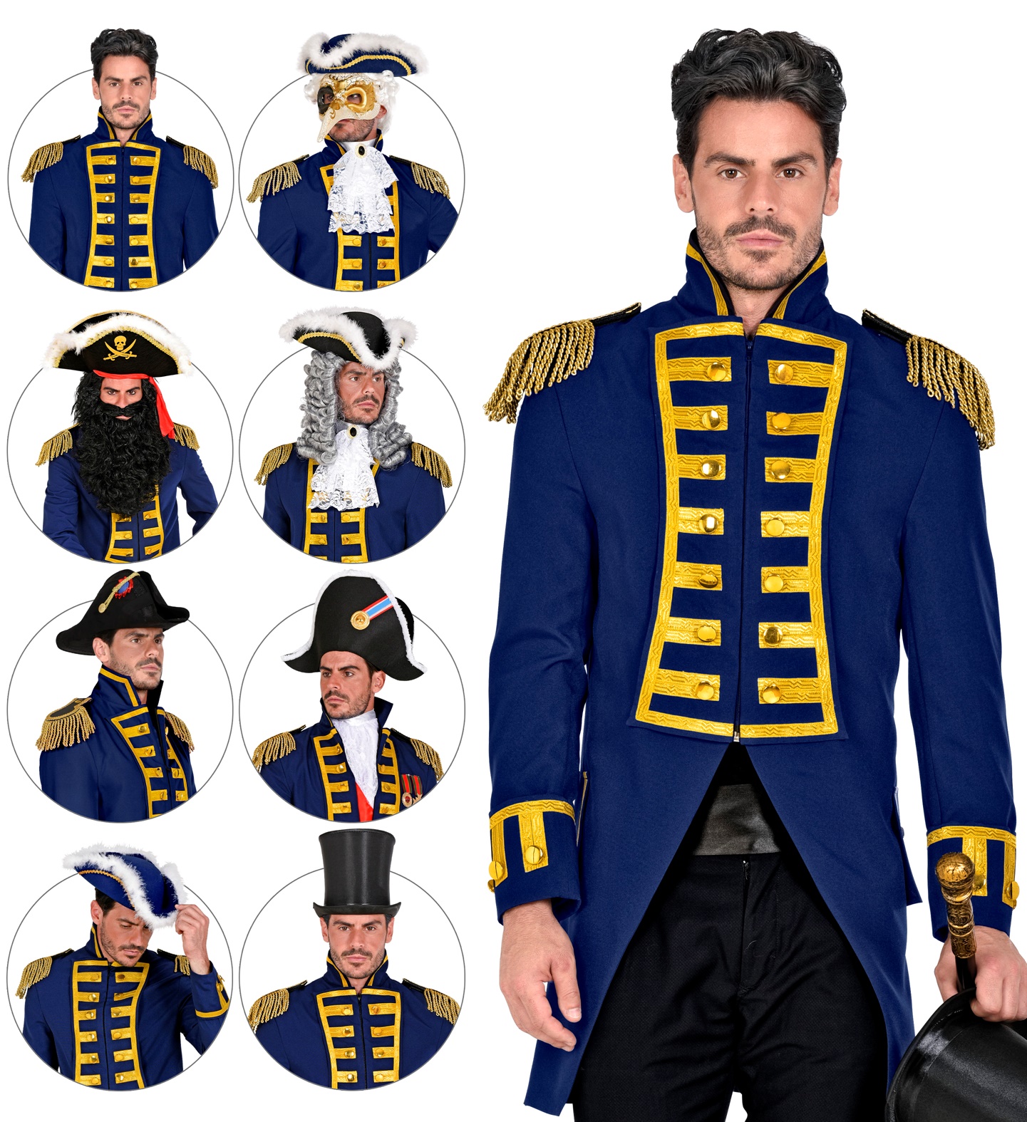 This Blue Parade Tailcoat Is a very versatile costume which can be styled many different ways. You can style this tailcoat as a Pirate, Governor, Napoleon, Venetian or an Admiral.