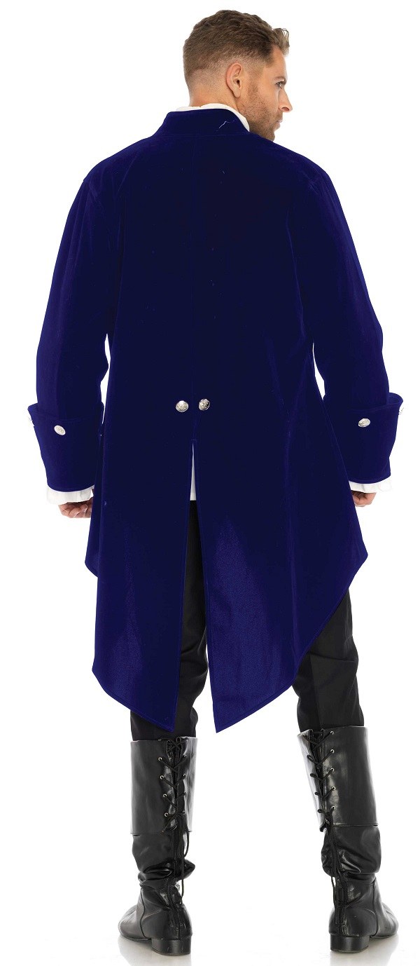 Long blue Velour Coat with wide cuffs and coin buttons.