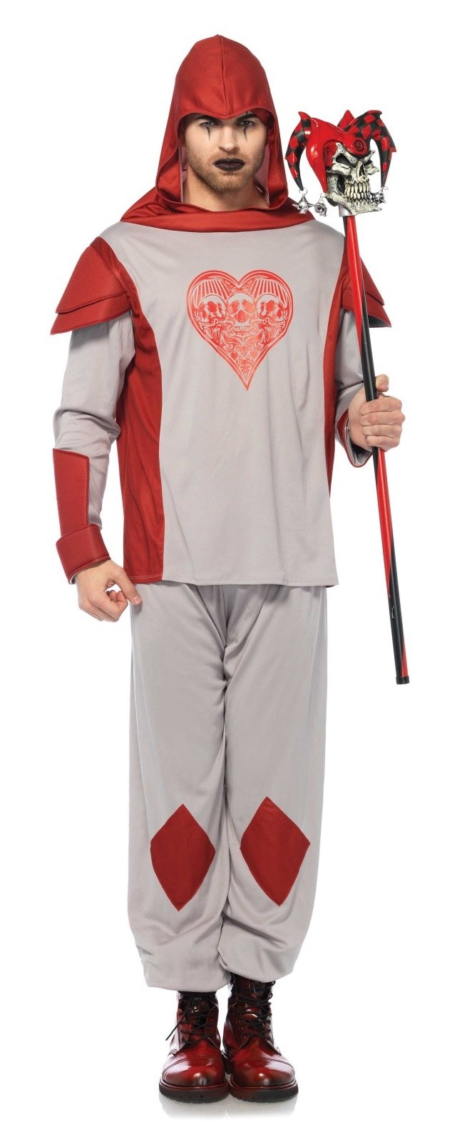Red Card Guard Costume includes a hooded shirt with card suit detail. The top also features foam shoulder caps.