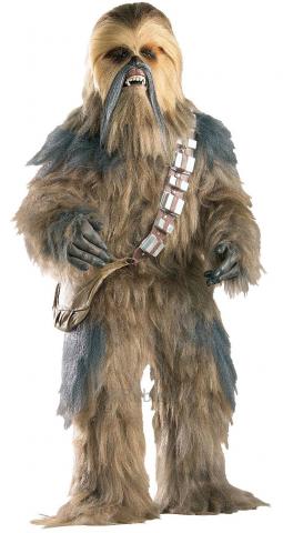 The Supreme Edition Chewbacca Costume is manufactured to meet the same standards as the one originally used in the film. It consists of hand-layered multi coloured long realistic hair fur bodysuit and mask for an authentic blended look complete with latex pouch hands and sash.